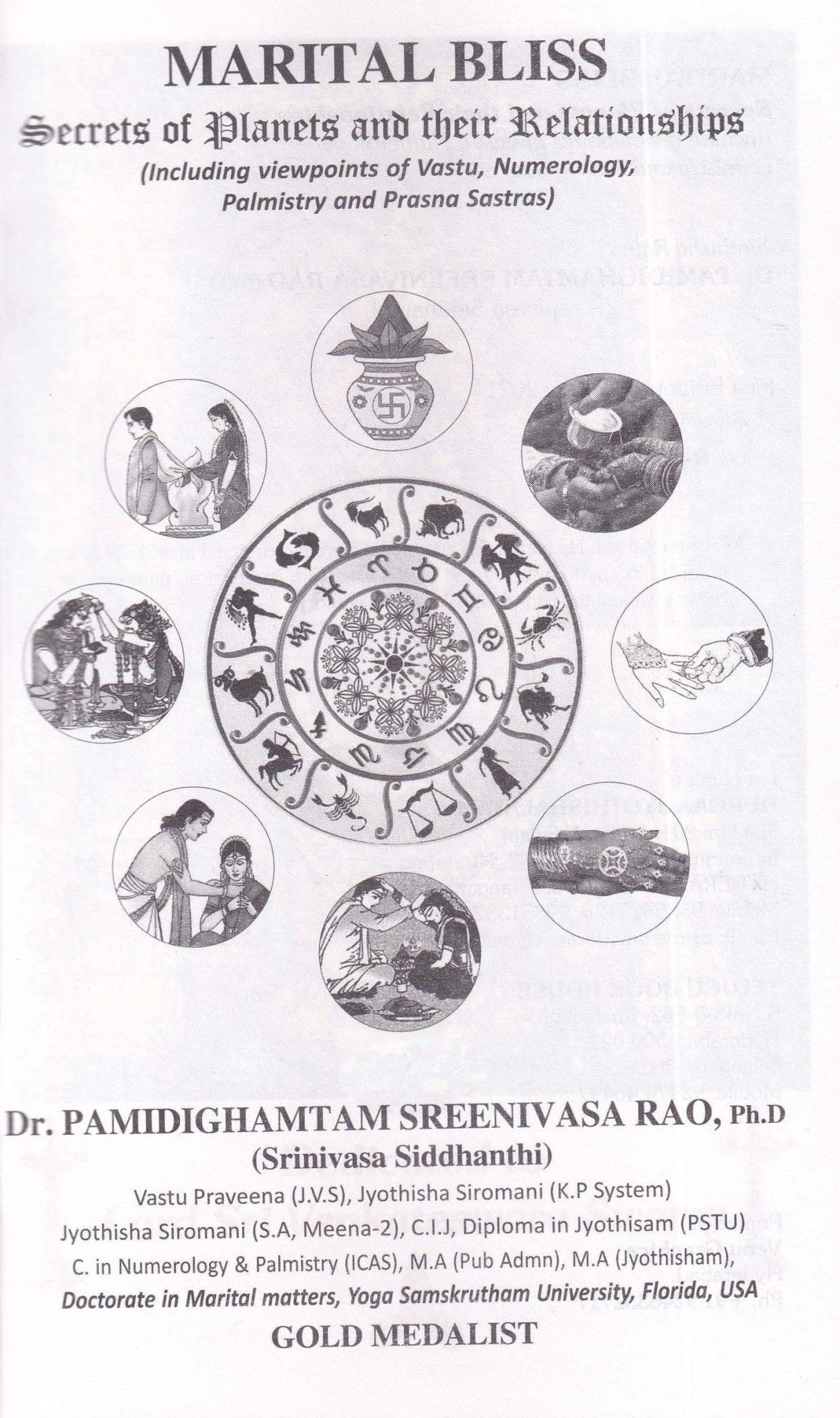 Dr. PAMIDIGHAMTAM SREENIVASA RAO, M.A., Ph.D. Popularly known as Sreenivasa Siddhanthi, is Retired Manager (Depot) Food Corporation of India. He pursued different streams of Astrology and all Occult Sciences through recognized and Prestigious Institutes and Universities.