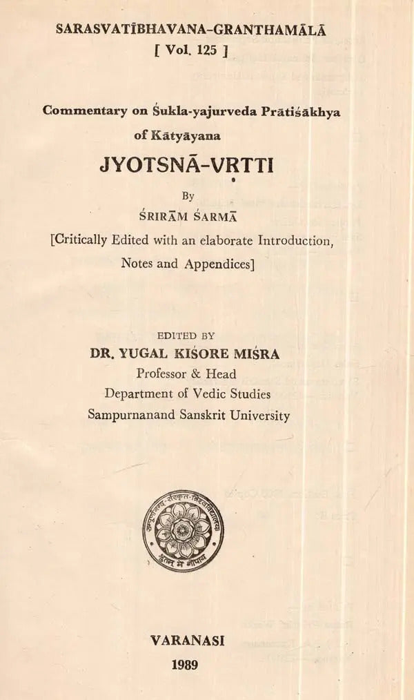 कात्यायनीयशुक्लयजु प्रातिशाख्यस्य श्रीरामशर्मणा प्रणोता ज्योत्स्नावृत्ति- Jyotsna Vrtti Commentary on Sukla-Yajurveda Pratisakhya of Katyayana
