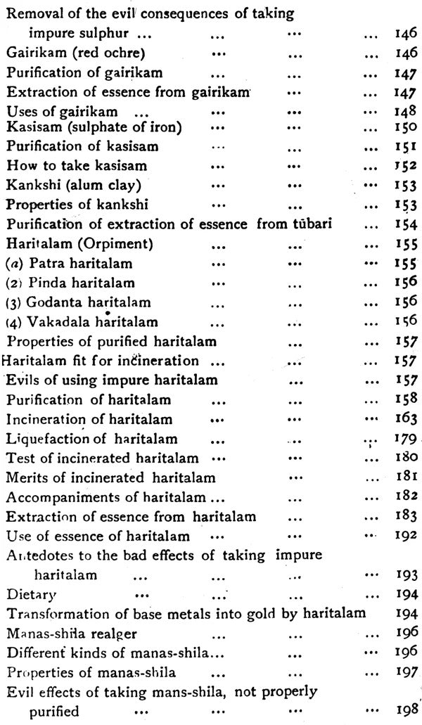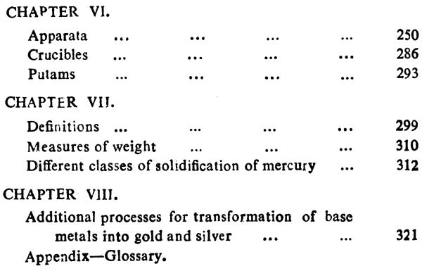 The publication of the present volume has well-nigh brought to close that part of the Rasa- Vidya (or the science of the minerals in all their aspects, viz., medicinal, alchemical, and industrial) which should be considered to be an introduction to the study of a pharmacopoea of drugs prepared mainly from minerals-a pharmacopoea of a colossal magnitude, prepared, in pre-historic times, by the ancient Indians. Much of the materials, originally intended to be dealt with in the first three volumes, are left out for treatment in a subsequent volume. The fourth and a few of the succeeding volumes would be mainly devoted to the study of recipes most of whom would be found to be astonishingly infallible.