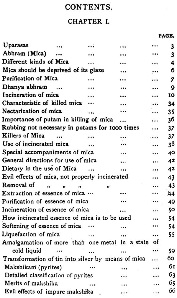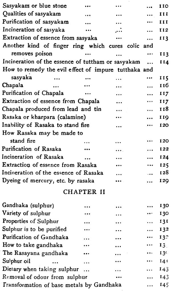 Metallurgy is a great science revealed to the world by God Himself at the commencement of the present Kalpa (a mundane period, followed and preceded by a dissolution of the universe-the present Kalpa commenced, according to Indian history. some 160,0000000 years back) It was introduced into India for the purpose of preventing desease and premature old age. This science, which is the giver of all wished-for objects, is now in a moribund condition, and is no longer given attention to by kings, whether Indian or foreign. Numerous were the books written on Metallurgy and Chemistry by ancient Indian sages. Most of these books have completely been lost; those which are extant are mostly very rare, and not very intelligible. The present book is based on many of those which are still extant, and have been collected carefully. It is written by the grace of the conqueror of death at the great city of Kalikshetra (Calcutta) in the year 5026 of the perverted Kalijuga.