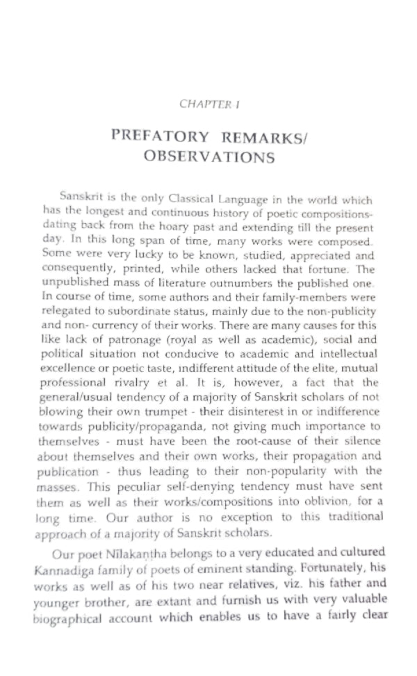 Here is an attempt to publish one such unknown and rare mahäkävya dealing with the life of Krsna from his birth upto his marriage with Rukmiņi. It is composed in the middle of the nineteenth century by Nilakantha, a Kannadiga Brahmin, who was domiciled in Maharashtra and immediately, a small commentary was written on it, that too in Pune by Vişnu Šāmarāya Ranade-a versatile scholar, scribe and collector of manuscripts. Both these works are edited together in this Book.