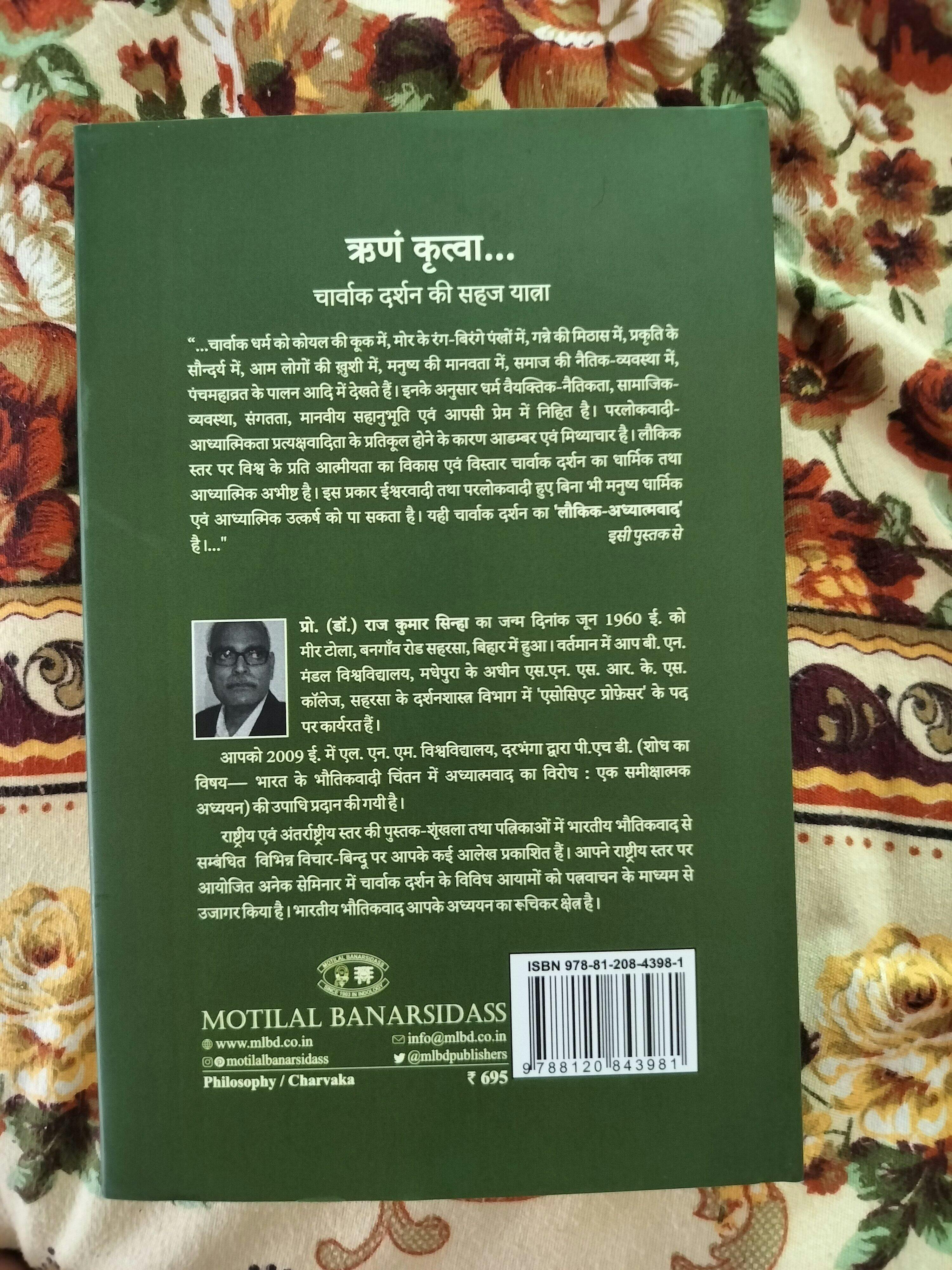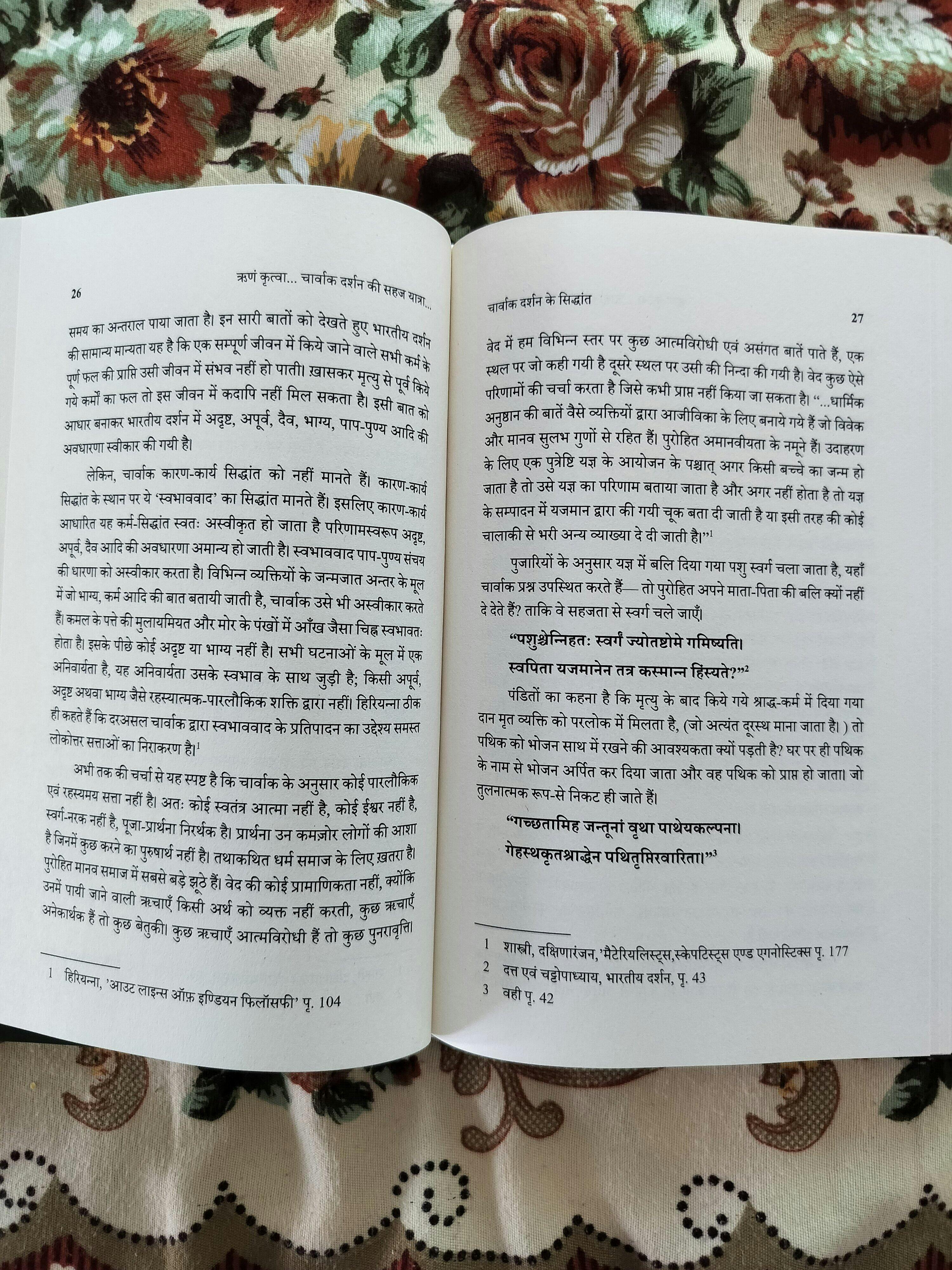 चार्वाक धर्म को कोयल की कूक में, मोर के रंग-बिरंगे पंखों में, गन्ने की मिठास में, प्रकृति के सौन्दर्य में, आम लोगों की ख़ुशी में, मनुष्य की मानवता में, समाज की नैतिक-व्यवस्था में, पंचमहाव्रत के पालन आदि में देखते हैं। इनके अनुसार धर्म वैयक्तिक-नैतिकता, सामाजिक- व्यवस्था, संगतता, मानवीय सहानुभूति एवं आपसी प्रेम में निहित है। परलोकवादी- आध्यात्मिकता प्रत्यक्षवादिता के प्रतिकूल होने के कारण आडम्बर एवं मिथ्याचार है। लौकिक स्तर पर विश्व के प्रति आत्मीयता का विकास एवं विस्तार चार्वाक दर्शन का धार्मिक तथा आध्यात्मिक अभीष्ट है । इस प्रकार ईश्वरवादी तथा परलोकवादी हुए बिना भी मनुष्य धार्मिक एवं आध्यात्मिक उत्कर्ष को पा सकता है। यही चार्वाक दर्शन का 'लौकिक-अध्यात्मवाद' है।..." इसी पुस्तक से