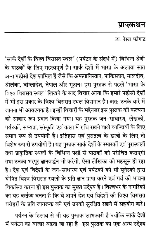 Rekha Faugat's work on the World Heritage Sites of SAARC countries would explore the significant cultural and natural landmarks within the South Asian Association for Regional Cooperation (SAARC) countries that have been recognized by UNESCO as World Heritage Sites. SAARC includes Afghanistan, Bangladesh, Bhutan, India, Maldives, Nepal, Pakistan, and Sri Lanka.