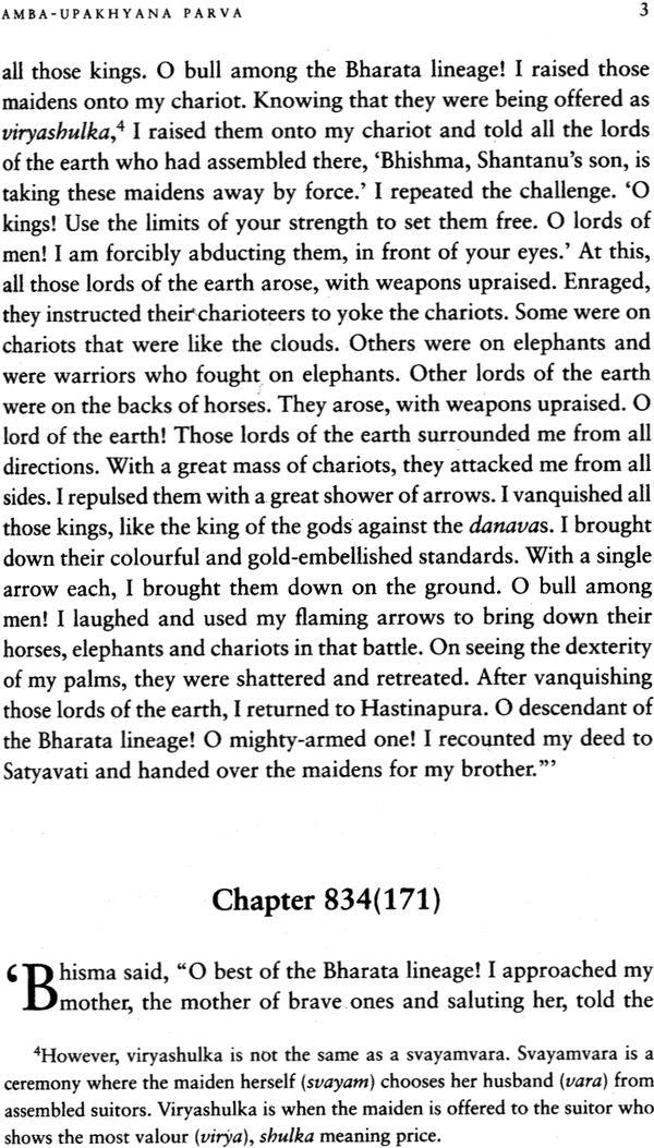 Parvasamgraha Parva (The various books, giving two listings of the Mahabharata with a very brief summary of the highlights of the story) |