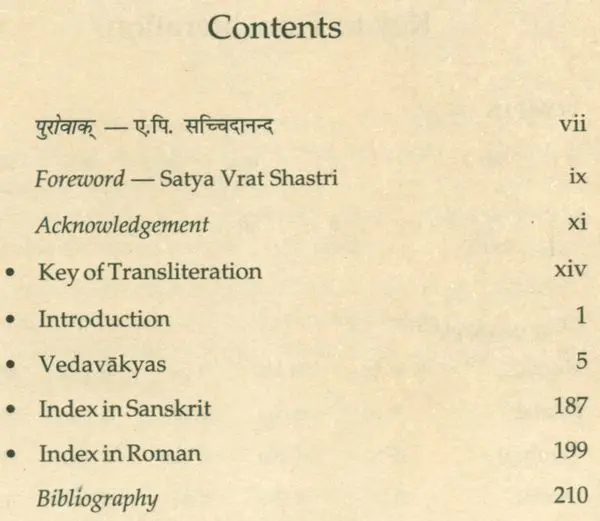 It is to the credit of Prof. Shashiprabha Kumar that she successfully faced the pressures of these onerous tasks and presented the readers with a fine and comprehensive collection of vedic sayings with fairly accurate translations Hindi an English with a view to, communicate the wisdom to the people of the modem period as effectively as possible who need this more than ever, beset as they are with problems disturbing enough. To revisit our past is indeed the need of the hour. We have to get connected with it to discover our moorings. The ancient sages and seers had wisdom revealed to them and they in all compassion passed it on to successive generations moulding their thought and actions. It is unfortunate that, somewhere in between, this tradition of transmitting the revealed knowledge got snapped. The generations it is more true of the modem generation - that followed, lost this wisdom. It is time the tradition is revived. It is not necessary to do it through the ancient medium. That simply would not be possible. Even classical Sanskrit is getting unintelligible now. What then one is to say of the Vedic Sanskrit with its plethora of archaic form that had started raising hackles in the very ancient period itself, the "raison d'etre of compiling the lexica of Vedic words, the Nighantus, as they are called, if the authorities like Yaska were to be believed. Since the Vedic wisdom has to be transmitted to modem India or for that matter modem society everywhere, to connect it with its moorings to rediscover the panacea for its ills, it is necessary to put it in the modem expression to make it available to modem man.