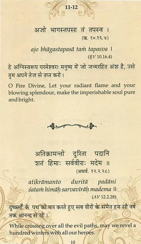 Vedamrtabindavah (Drops of Vedic Nectar) is a modest tribute to those who are genuinely interested in Vedas' universal message. It is a collection of select Vedic statements with Hindi and English translations intending to communicate the Vedic wisdom to the young people of modem age. This book, with fairly accurate translations from Vedic Sanskrit, aims to acquaint the modem readers with their most ancient, richest literary heritage so that they can comprehend its worth and bring value to their life.