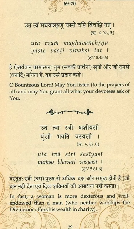 In spite of numerous translations available, this volume has some novelty in its content and freshness in its presentation, and stands witness to the fact that in representing Vedas, there still exist infinite possibilities.