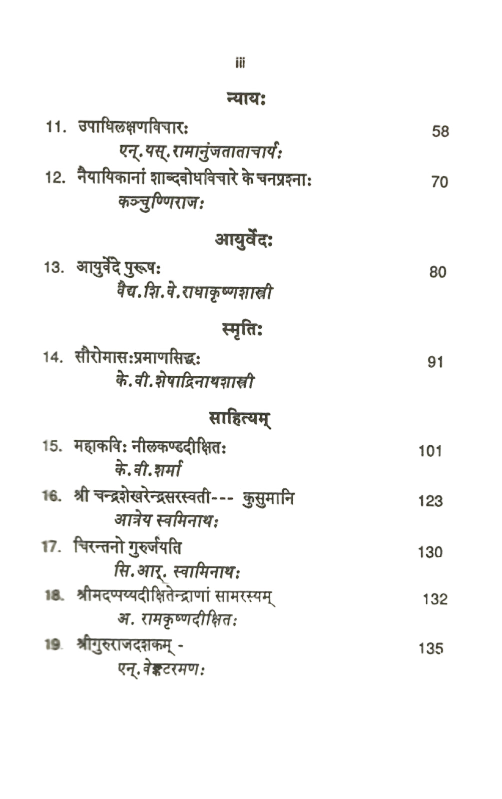 This book is a compilation of learned discourses on subjects which touch the unusally comprehensive and wide Paramartika interests of the sage to whom it is dedicated with the utmost reverence. The contributors are panditas of distinguished standing besides being devoted sishyas of the great Acharya. Vepathur Subrahmanya Sastrigal