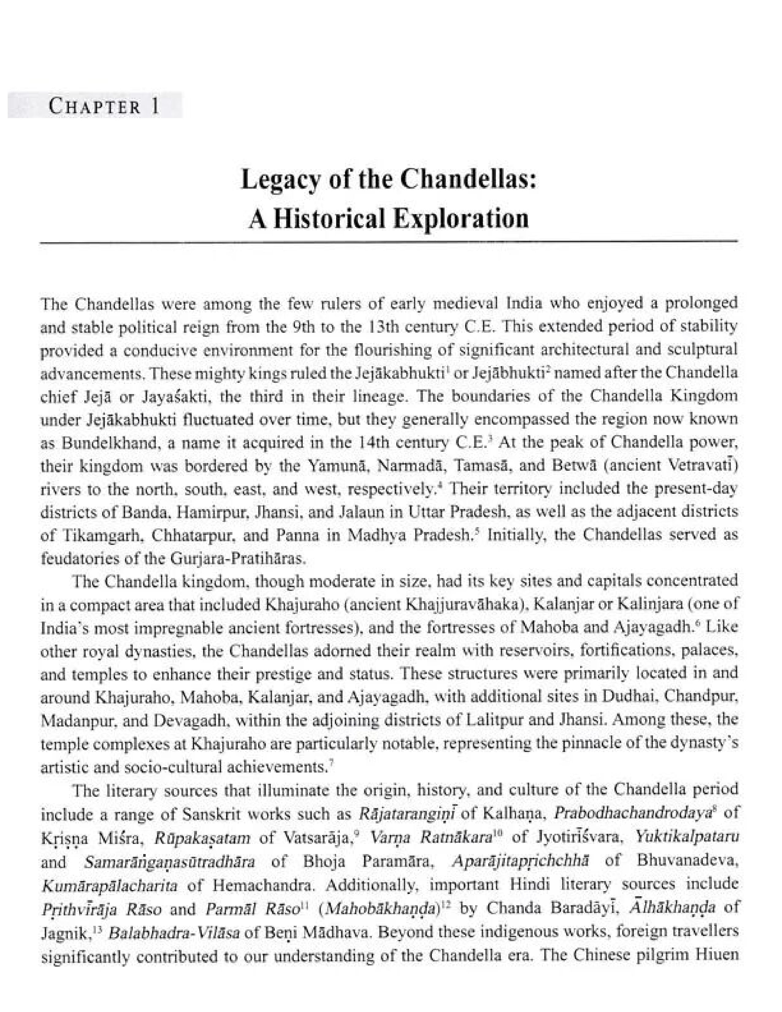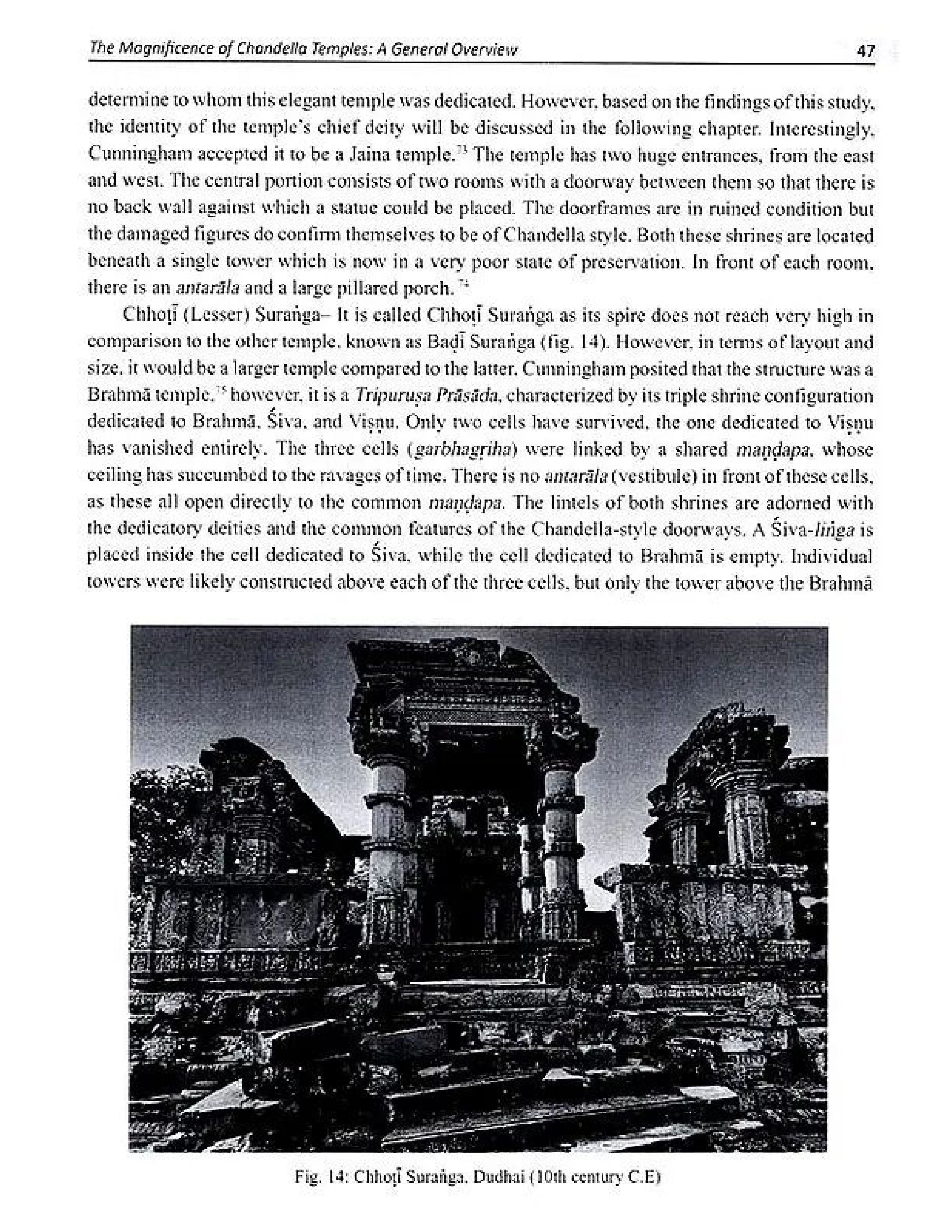 The Jaina temples of Devagadh and Madanpur, Nilakantha temple of Kalanjar, Vişņu and Śiva temples of Chandpur and Madanpur, Tripuruşa Prasadas of Dudhai and Makarbai village of Mahoba, and Siva temple of Gairaha are significant monuments for their architectural and sculptural brilliance. Though often overshadowed by the more renowned Khajuraho temples, these monuments deserve greater recognition for their exceptional craftsmanship. The doorways of these temples are adorned with figures and motifs both religious and secular-that reflect the stylistic evolution and regional variations of the Khajuraho style, marking their chronological development. Therefore, this study provides a comprehensive understanding of temple construction activities, their religious affiliations, and their alignment with the texts of temples of not only Khajuraho but other parts of the Chandella kingdom.