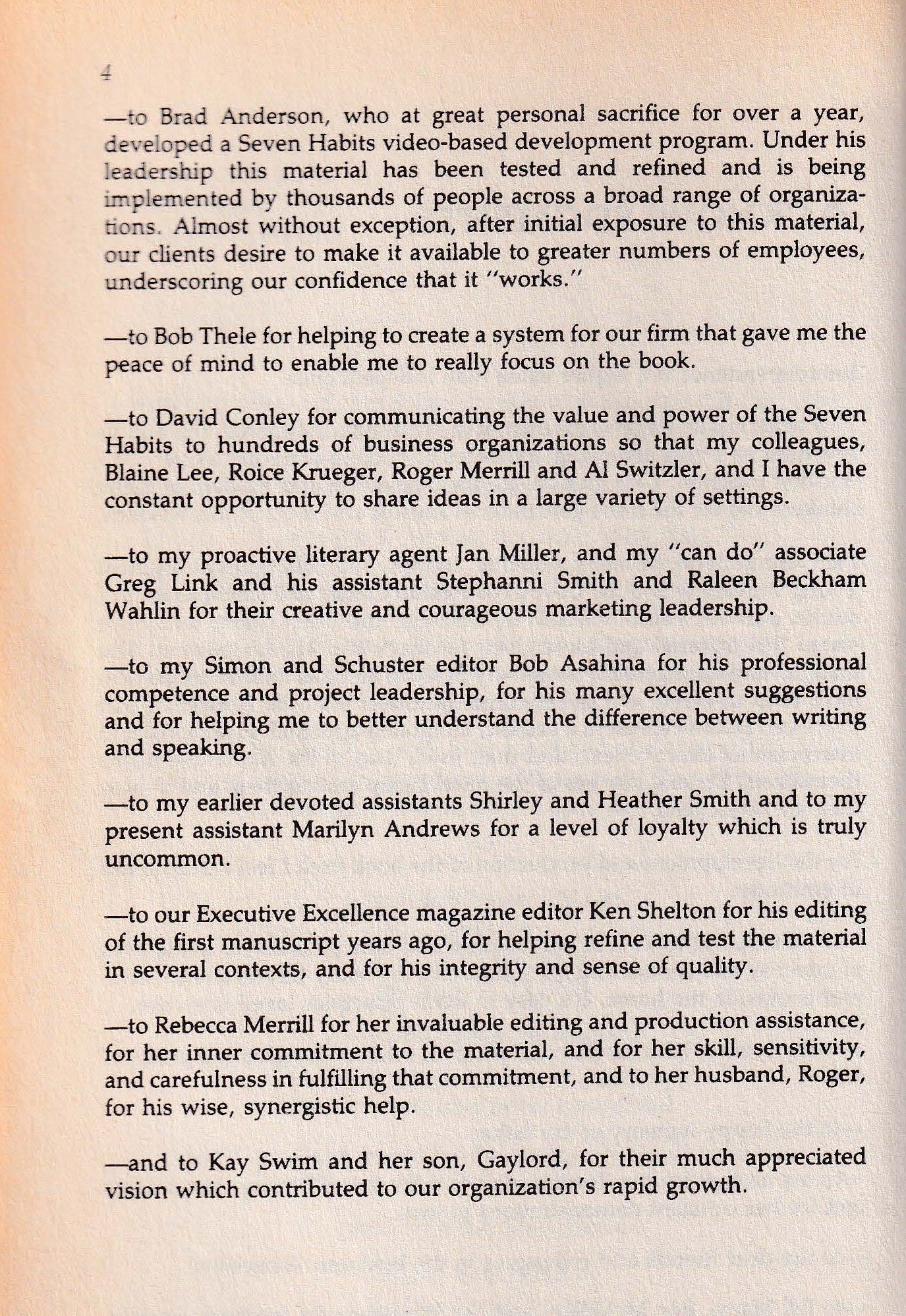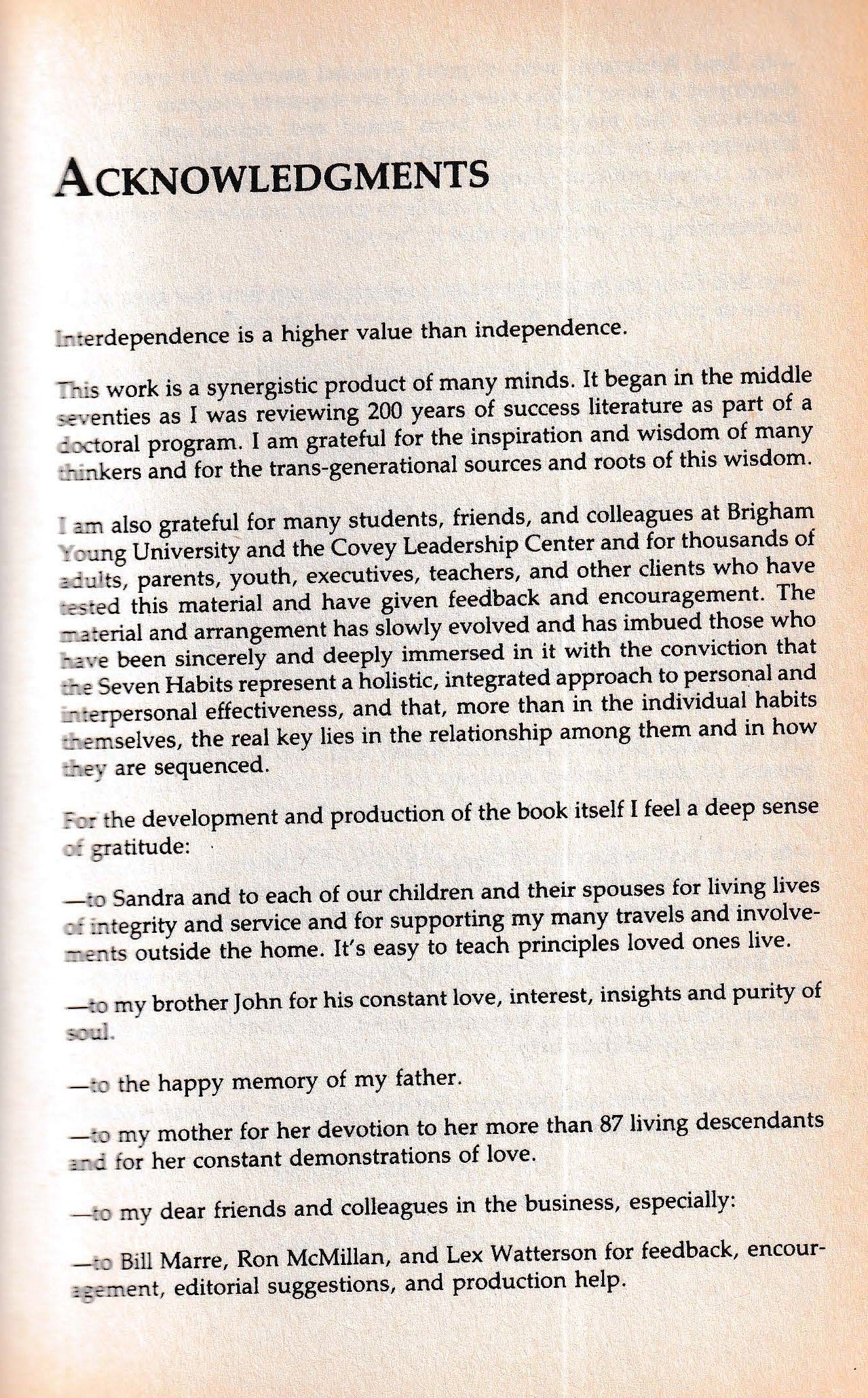 Stephen R Covey, the author of the book, is known to hold an MBA from the Harvard University. In his previous years of schooling, Covey also has studied Religious Education and Business Administration. It was in his doctoral thesis that Covey came across a contrast in the literature regarding self-help. His observations marked that the books post 1920?s focused highly on personality traits while the ones before that focused on character development. That is when the author put forth his belief about how a balance between the two is more essential than the two in isolation.