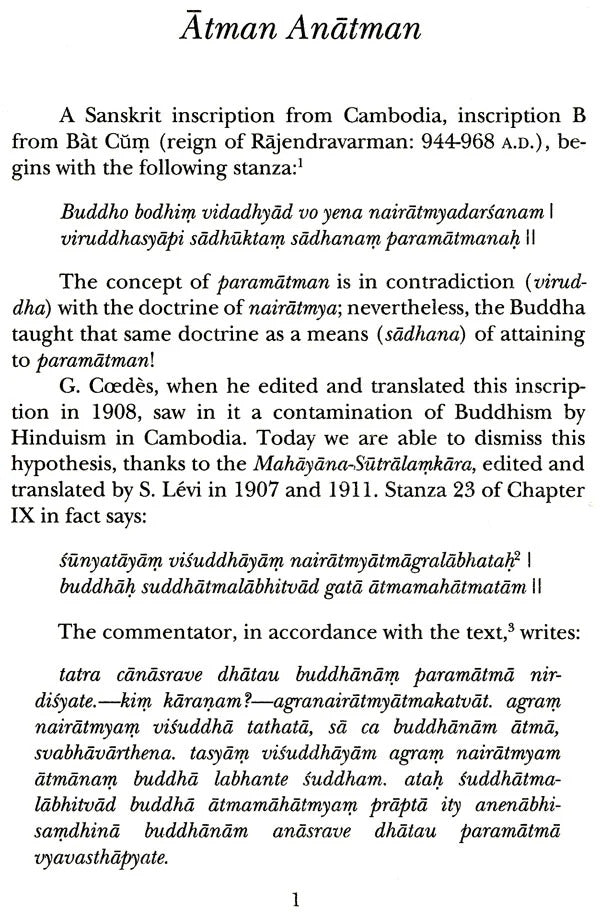 This book came into being by chance. I had intended, in fulfilment of a long-standing promise,' to write a book on Buddhism in ancient Cambodia. An encounter with a stanza on an inscription led me, however, to make a thorough study of the problem of the atman in Buddhism.